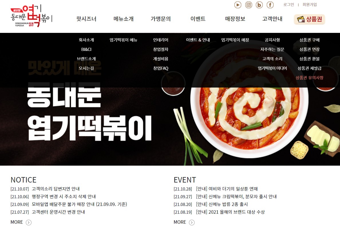 동대문 엽기떡볶이 홈페이지에 방문을 하면 여러가지 notice 정보와 event 등을 살펴볼수 있습니다.