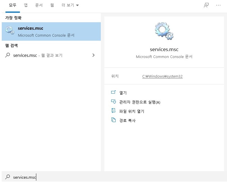 그다음 또 services.msc 파일도 위와같이 설정 변경을 해주면 됩니다.