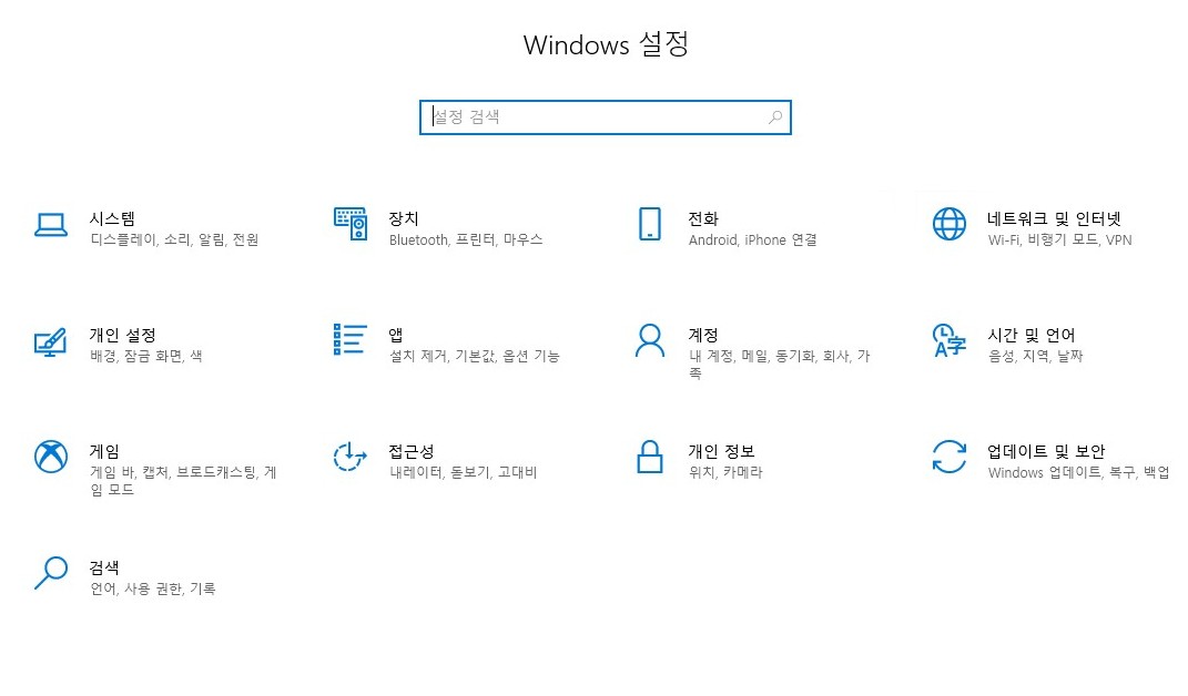 자신의 컴퓨터 제어판에 보면 windows 설정이 있습니다. 여기서 내 컴퓨터의 다양한 시스템 항목에 대한 변경이 가능한데요 업데이트 및 보안에서 여러가지 복구 백업등에 대한 설정 변경이 가능합니다.