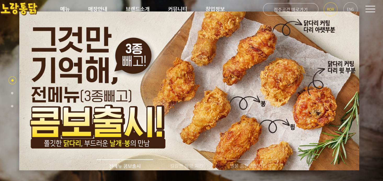 위와같이 노랑통닭 홈페이지에서 치킨과 각종 사이드 메뉴를 살펴보고 결정하면 좋겠지요