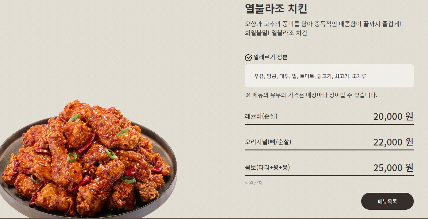 열불라조 치킨을 비롯한 바삭 누룽지 맵싸한 고추 치킨등 내가 평상시 먹고 싶었던 메뉴를 선택해보세요